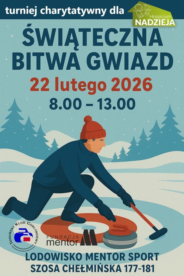 Toruński Klub Curlingowy zaprasza wszystkich na trzynastą edycję charytatywnego turnieju – XIII Świąteczna Bitwa Gwiazd. Impreza odbędzie się 10 grudnia (niedziela), w godzinach 8:00 – 13:00 na lodowisku Mentor Sport (Toruń, Szosa Chełmińska 177-181). Tradycyjnie, będziemy grać i zbierać środki dla Hospicjum…